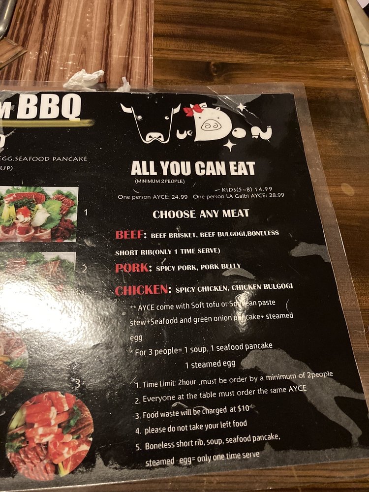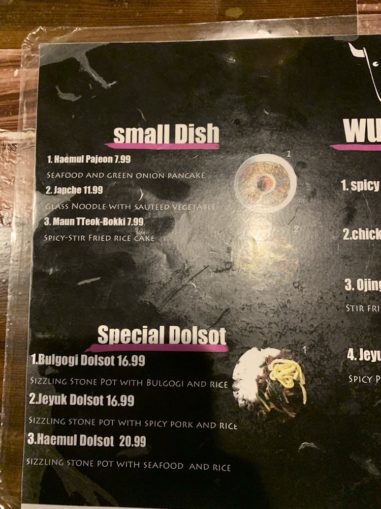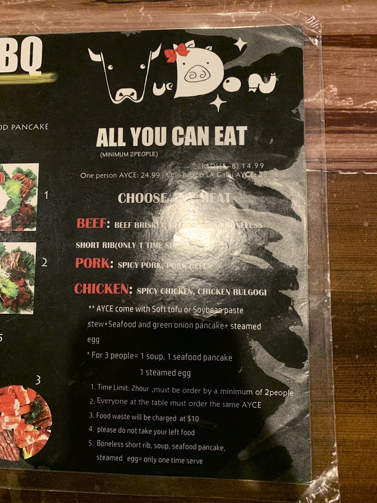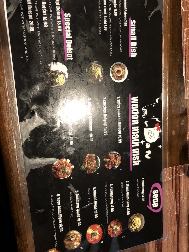 Introducing the menu at Wudon Korean BBQ, a casual restaurant in Saint Louis offering a mix of traditional Korean soups and barbeque dishes. Specializing in beef, chicken, and seafood, their Spicy Stir-Fried Squid and Beef Bulgogi are stand-out options. Customers praise the All You Can Eat experience, with favorites like Boneless Short Rib and Chicken Bulgogi. The cozy ambiance and attentive service make for a pleasant dining experience, although some reviews mention slight delays due to understaffing. The flavorful marinades and generous portions make Wudon Korean BBQ a popular choice for groups and families. Don't miss the seafood pancake and unique side dishes that accompany each meal. Overall, Wudon Korean BBQ offers a satisfying taste of Korean cuisine in a casual setting.